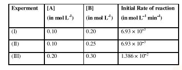 The following results were obtained during kinetic studies of the reaction : $2 \mathrm{~A}+\mathrm{B} \rightarrow$ Products