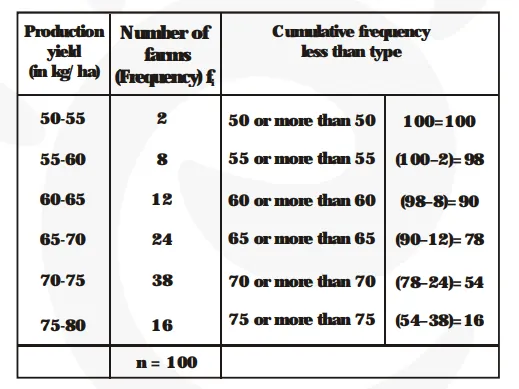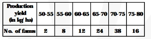 The following table gives production yield per hectare of wheat of 100 farms of a village.