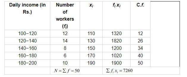 Thus, the mean daily income of the workers is Rs 145.20.