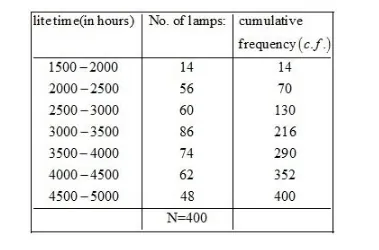 Hence, the median life of the lamps is approximately 3406.98 hours.