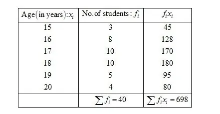 Hence, the mean age of the students $=17.45$ years