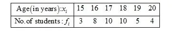 The following table gives the number of boys of a particular age in a class of 40 students. Calculate the mean age of the students