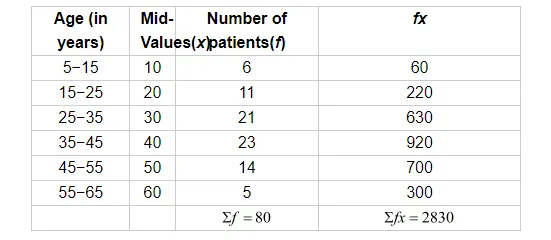 Thus, the mean age of the patients is 35.37 years.