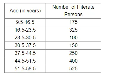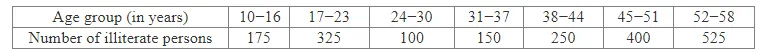 The following table shows the number of illiterate persons in the age group (10−58 years) in. a town: