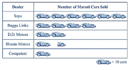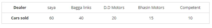 The following table shows the number of Maruti cars sold by five dealers in a particular month: