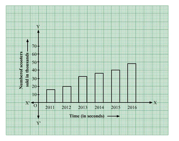 The following table shows the number of scooters sold by a dealer during six consecutive years. Draw a bar graph to represent this data.