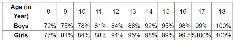 (i) Both boys and girls achieve their maximum height in 18th years.