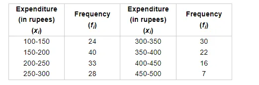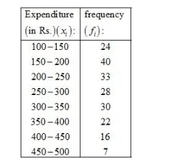 The following tables gives the distribution of total household expenditure (in rupees) of manual workers in a city.