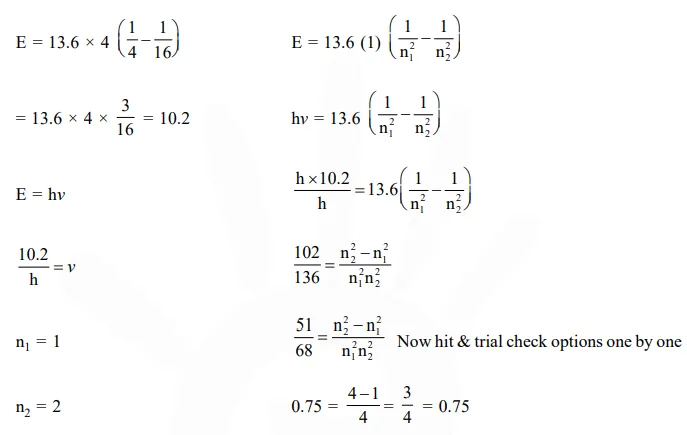 Question: The frequency of light emitted for the transition $\mathrm{n}=4$ to $\mathrm{n}=2$ of $\mathrm{He}^{+}$is equal to the transition in $\mathrm{H}$ atom corresponding to which of the following