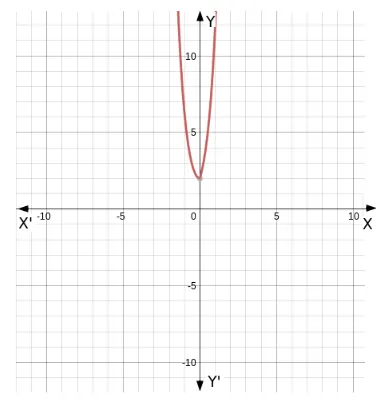 From the given graph we can see that the range is $[2, \infty)$ and $R$ is the codomain of the given function.