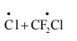 $\mathrm{CF}_{2} \mathrm{Cl}_{2}(\mathrm{~g}) \stackrel{\mathrm{U} \cdot \mathrm{v}}{\longrightarrow} \mathrm{Cl}^{*}(\mathrm{~g})+{ }^{*} \mathrm{CF}_{2} \mathrm{Cl}(\mathrm{g})$