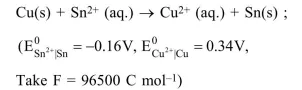 The Gibbs energy change (in J) for the given reaction at $\left[\mathrm{Cu}^{2+}\right]=\left[\mathrm{Sn}^{2+}\right]=1 \mathrm{M}$ and $298 \mathrm{~K}$ is: