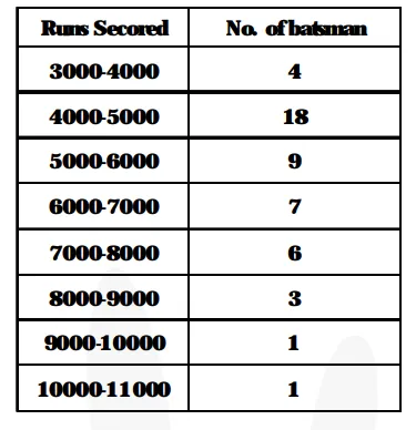 The given distribution shows the number of runs scored by some top batsmen of the world in one day international cricket matches :
