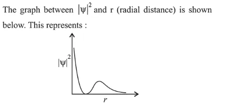 The given probability density curve is for $2 s$ orbitaı due to the presence of only one radial node. $1 s$ and $2 p$ orbital do not have any radial node and $3 s$ orbital has two radial nodes. Hence, option (2) is correct.