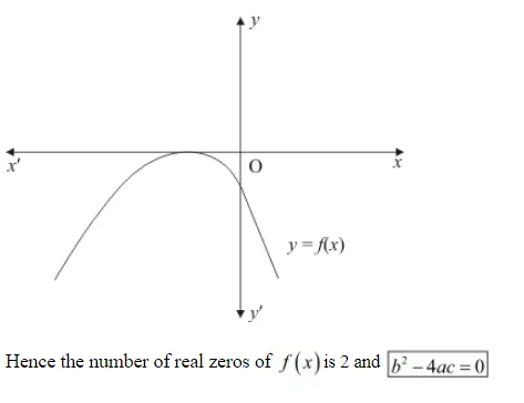 The graph of the polynomial $f(x)=a x^{2}+b x+c$ or the curve touches $x$-axis at point $\left(\frac{-b}{2 a}, 0\right)$. The $x$-coordinate of this point gives two equal zeros of the polynomial and $b^{2}-4 a c=0$.