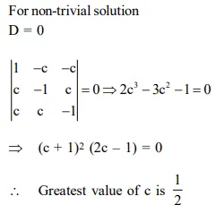 The greatest value of $\mathrm{c} \in \mathrm{R}$ for which the system of linear equations