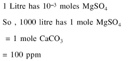 The hardness of a water sample containing $10^{-3} \mathrm{M} \mathrm{MgSO}_{4}$ expressed as $\mathrm{CaCO}_{3}$ equivalents (in ppm) is