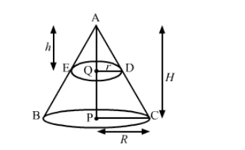 $\Rightarrow \frac{h}{H}=\frac{r}{R} \quad \ldots$ (i)