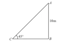 The height of a tower is 10 m. What is the length of its shadow when Sun's altitude is 45°?