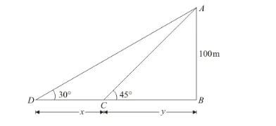 $\Rightarrow \tan 30^{\circ}=\frac{100}{x+y}$