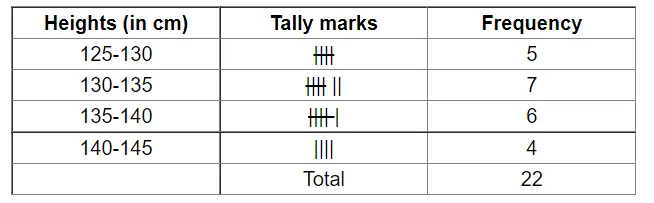 The heights (in cm) of 22 students were recorded as under:
