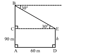 Now, $A B=90 \mathrm{~m}$ and $A D=60 \mathrm{~m}$ such that $C E=60 \mathrm{~m}$ and $\angle B E C=30^{\circ}$.