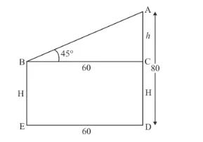 Let BE = H m, AC = h m, AD = 80m.