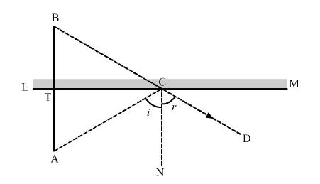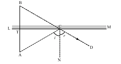 Given: An object is placed at a point A, the image of the object is seen at the point B, an observer is at point D, and LM is a plane mirror.