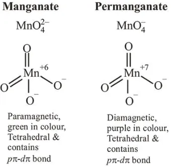 Manganate ion is paramagnetic while permanganate ion is diamagnetic.