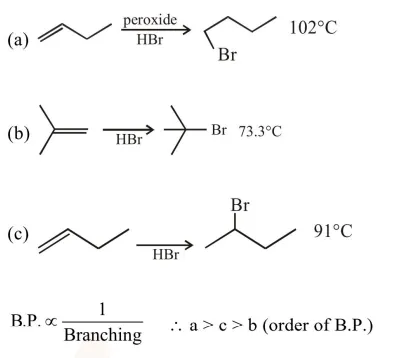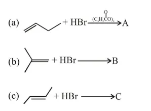 Question: The increasing order of the boiling points of the major products A, B and C of the following reactions will be :