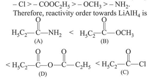 The reactivity order of carboxylic acid derivatives depends on the electrophilicity of the carbonyl carbon and Leaving ability of the four groups is