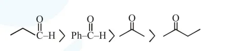 Reactivity order of various carbonyl compounds $\rightarrow$ Aldehydes $>$ Ketones