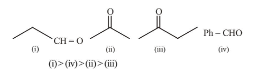 The increasing order of the reactivity of the following compounds in nucleophilic addition reaction is :