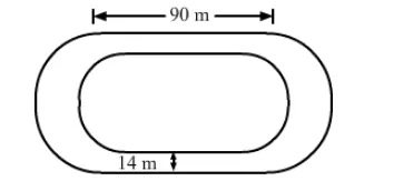 Area of track $=\{$ Area of the two rectangles [each $(90 \times 14) \mathrm{m}]+$ Area of the circular ring with $\mathrm{R}=49 \mathrm{~m}$ and $\mathrm{r}=35 \mathrm{~m})\}$