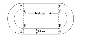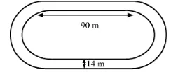 It is given that, length of each straight portion $=90 \mathrm{~m}$ and width of track $=14 \mathrm{~m}$