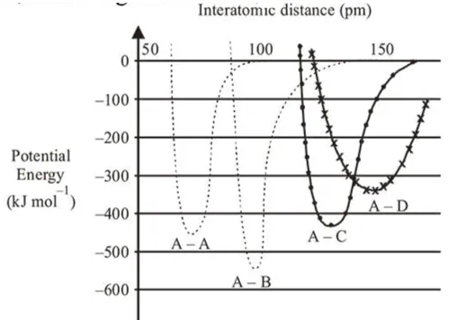 The intermolecular potential energy for the molecules $A$, $B, C$ and $D$ given below suggests that :