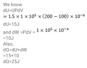 The internal energy of a gas is given by $\mathrm{U}=1.5 \mathrm{pV}$. It expands from $100 \mathrm{~cm}^{3}$ to $200 \mathrm{~cm}^{3}$ against a constant pressure of $1.0 \times 10^{6} \mathrm{~Pa}$ Calculate the heat absorbed by the gas in the process.
