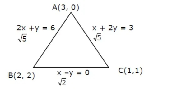 The intersection of three lines $x-y=0, x+2 y=3$ and $2 x+y=6$ is a: