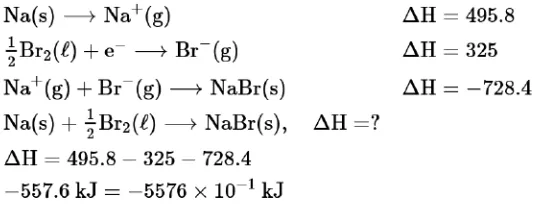 The ionization enthalpy of $\mathrm{Na}^{+}$formation from $\mathrm{Na}_{(g)}$ is $495.8 \mathrm{~kJ} \mathrm{~mol}^{-1}$, while the electron gain enthalpy of Br is $-325.0 \mathrm{~kJ} \mathrm{~mol}^{-1}$. Given the lattice enthalpy of $\mathrm{NaBr}$ is $-728.4 \mathrm{~kJ} \mathrm{~mol}^{-1}$. The energy for the formation of $\mathrm{NaBr}$ ionic solid is (-)____________ $\times 10^{-1} \mathrm{~kJ} \mathrm{~mol}^{-1}$