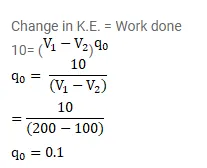 The kinetic energy of a charged particle decreases by $10 \mathrm{~J}$ as it moves from a point at potential $100 \mathrm{~V}$ to a point at potential $200 \mathrm{~V}$. Find the charge on the particle.