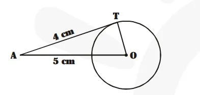 The length of a tangent from a point A at a distance 5 cm from the centre of the circle is 4 cm. Find the radius of the circle.