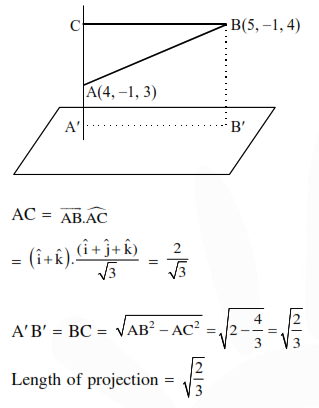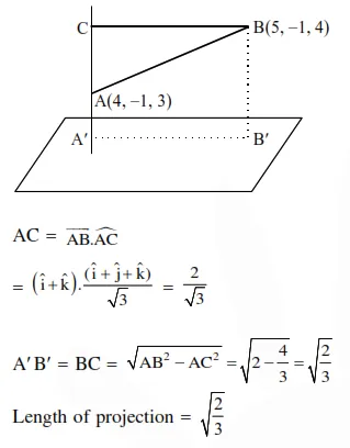 The length of the projection of the line segment joining the points $(5,-1,4)$ and $(4,-1,3)$ on the plane, $x+y+z=7$ is: