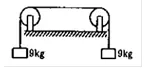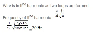 The length of the wire shown in figure between the pulleys is $1.5 \mathrm{~m}$ and its mass is $120 \mathrm{~g}$. Find the frequency of vibration with which the wire vibrates in two loops leaving the middle point of the wire between the pulleys at rest.