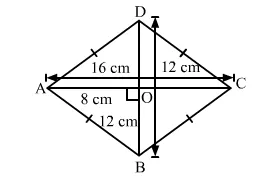 Here, AC and BD are the diagonals of ABCD, where AC = 16 cm and BD = 12 cm.