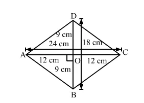 Here, AC and BD are the diagonals of ABCD, where AC = 24 cm and BD = 18 cm.