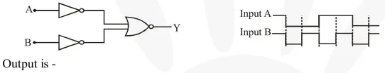 The logic circuit shown below has the input wave forms ' $A$ ' and ' $B$ ' as shown. Pick out the correct output waveform.