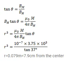 The magnetometer of the previous problem is used with the same magnet in Tan-B position. Where should the magnet be placed to produce a $37^{\circ}$ deflection of the needle?