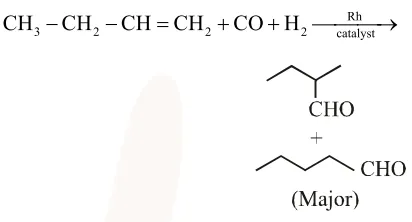 $\mathrm{CH}_{3} \mathrm{CH}_{2} \mathrm{CH}=\mathrm{CH}_{2} \underset{\text { Rh catalyst }}{\stackrel{\mathrm{H}_{2} / \mathrm{CO}}{\longrightarrow}}$