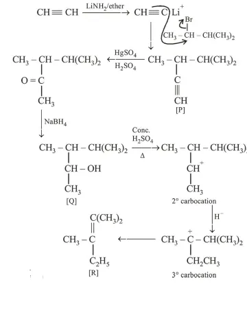 The major product [ $R$ ] in the following sequence of reactions is :
