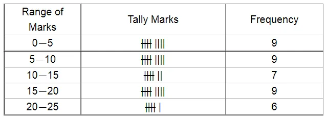 Divide the data into five groups, namely 0-5, 5-10, 10-15, 15-20 and 20-25 and prepare a grouped frequency table.